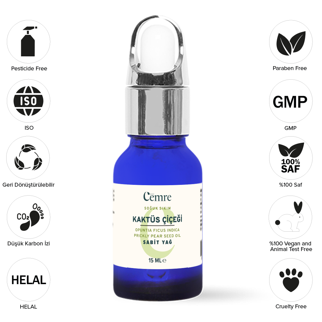 ÜRETİM YÖNTEMİ: Kaktüs çekirdeğinden soğuk sıkım (cold press) yöntemiyle elde edilmiştir.
