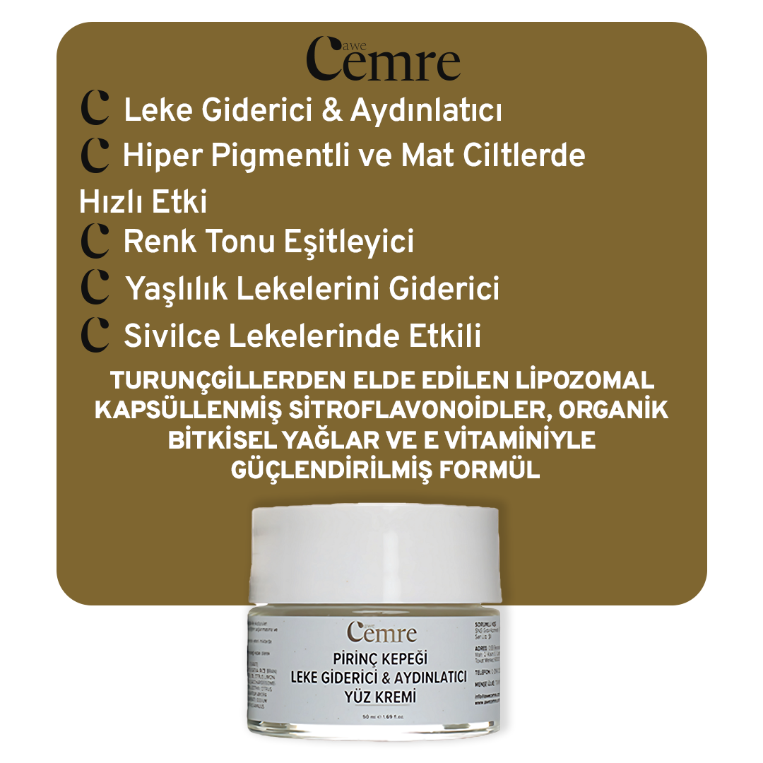 Pirinç Kepeği Leke Giderici & Aydınlatıcı Yüz Kremi Kremi 50 ML
