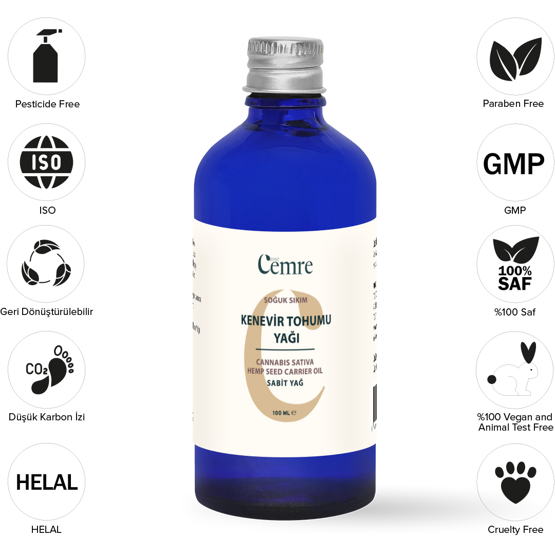 İçindekiler: %100 Kenevir Tohumu Yağı (Cannabis Sativa Seed Oil)